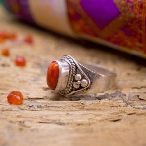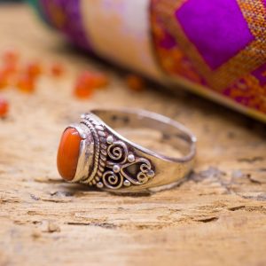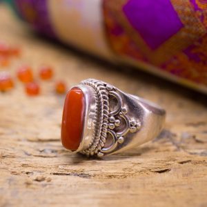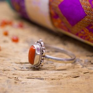 Bague Tagore Argent et Corail Rouge – Pièce Unique