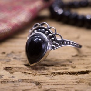 Bague Ovale Argent Brossé et Goutte Onyx Noir